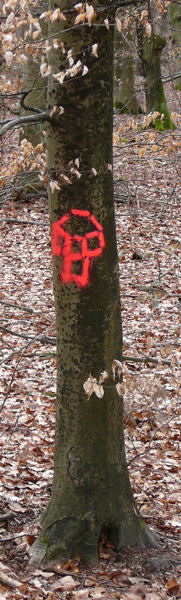 Meine Kritik hatte sich übrigens in keinster Weise auf die kleinen Markierungen von Wander- oder Radwegen bezogen, sondern ausschließlich auf die riesigen und sehr häßlich aufgesprühten Zahlen, mit denen der Wald regelrecht verunstaltet wird.