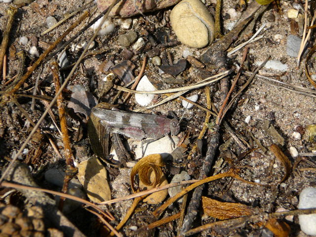 Familie der Feldheuschrecken Besonders geschützt! Sieht man von: Juli-Oktober Größe: Vorkommen: Trockenrasen, Dünen Ernährung: Gras und Kräuter Überwinterung: Ei Diese Schrecken passen sich farblich dem Boden an, sind meist grau oder braun. Sie fliegen plötzlich auf, wenn man ihnen zu nahe kommt. Dann sieht man auch ihre schönen blauen Flügel. Fotos links und unten: September 2010, |